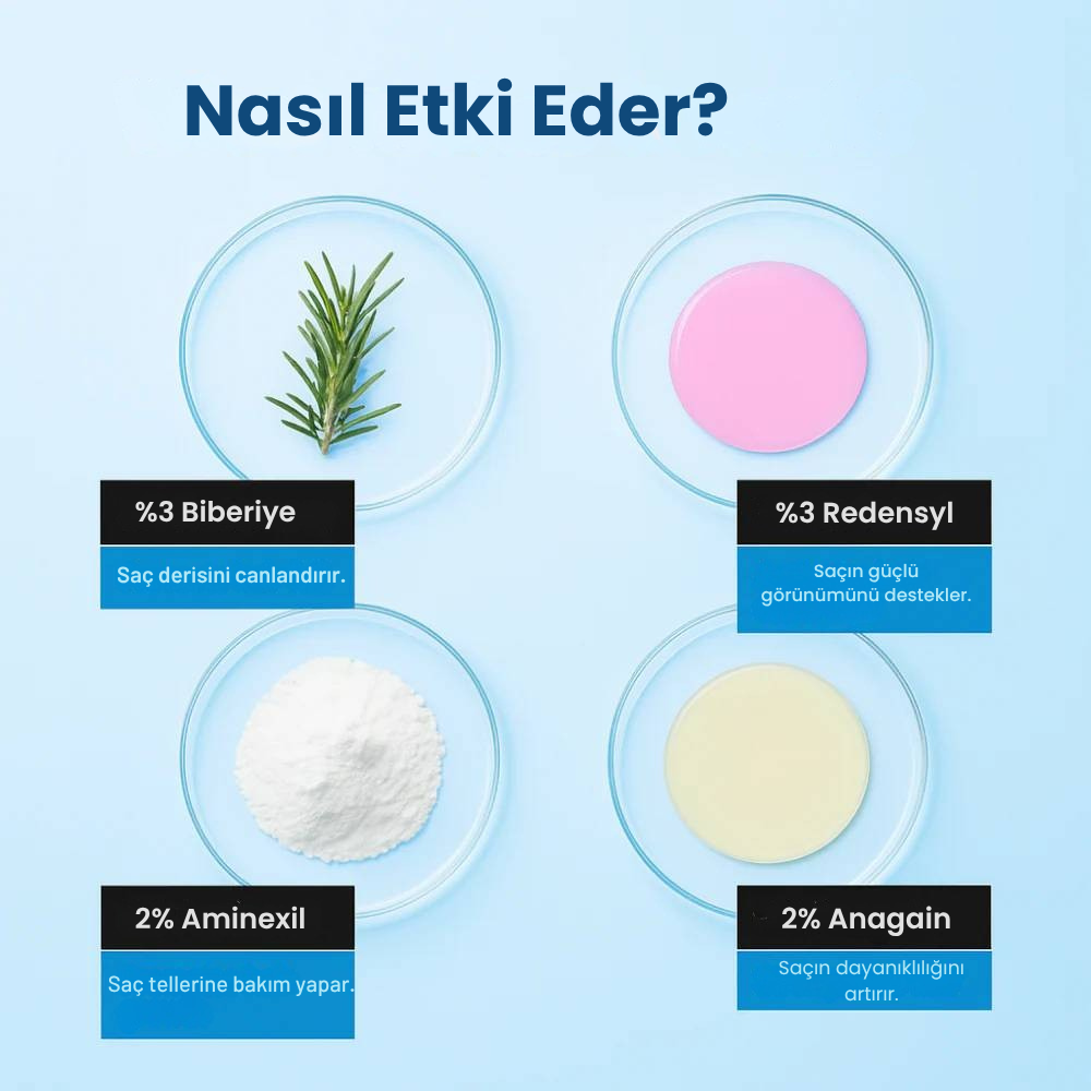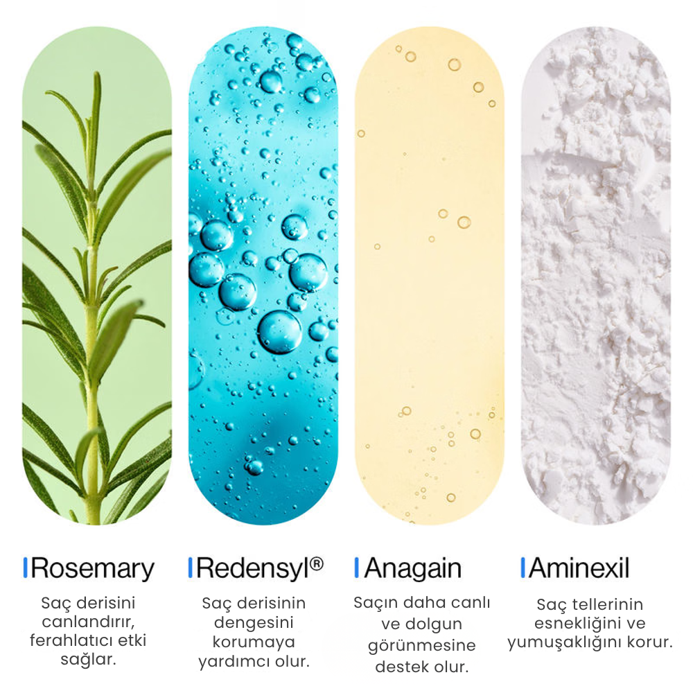 Zayıflayan saç köklerine özel yenileyici bakım.